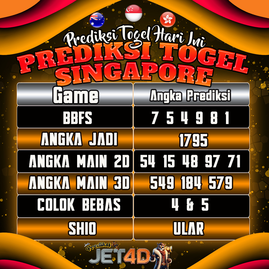 Selamat datang di Prediksi Togel Jet4D, situs terpercaya untuk para pecinta angka! Hari ini, kita akan bahas seputar Togel Singapore (SGP) – salah satu pasaran togel paling bergengsi dan diminati di Asia.