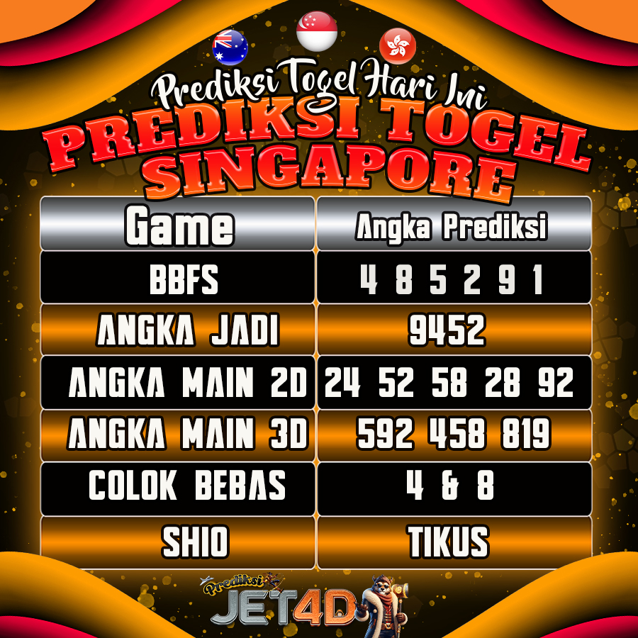 Selamat datang di Prediksi Togel Jet4D, situs terpercaya untuk para pecinta angka! Hari ini, kita akan bahas seputar Togel Singapore (SGP) – salah satu pasaran togel paling bergengsi dan diminati di Asia.